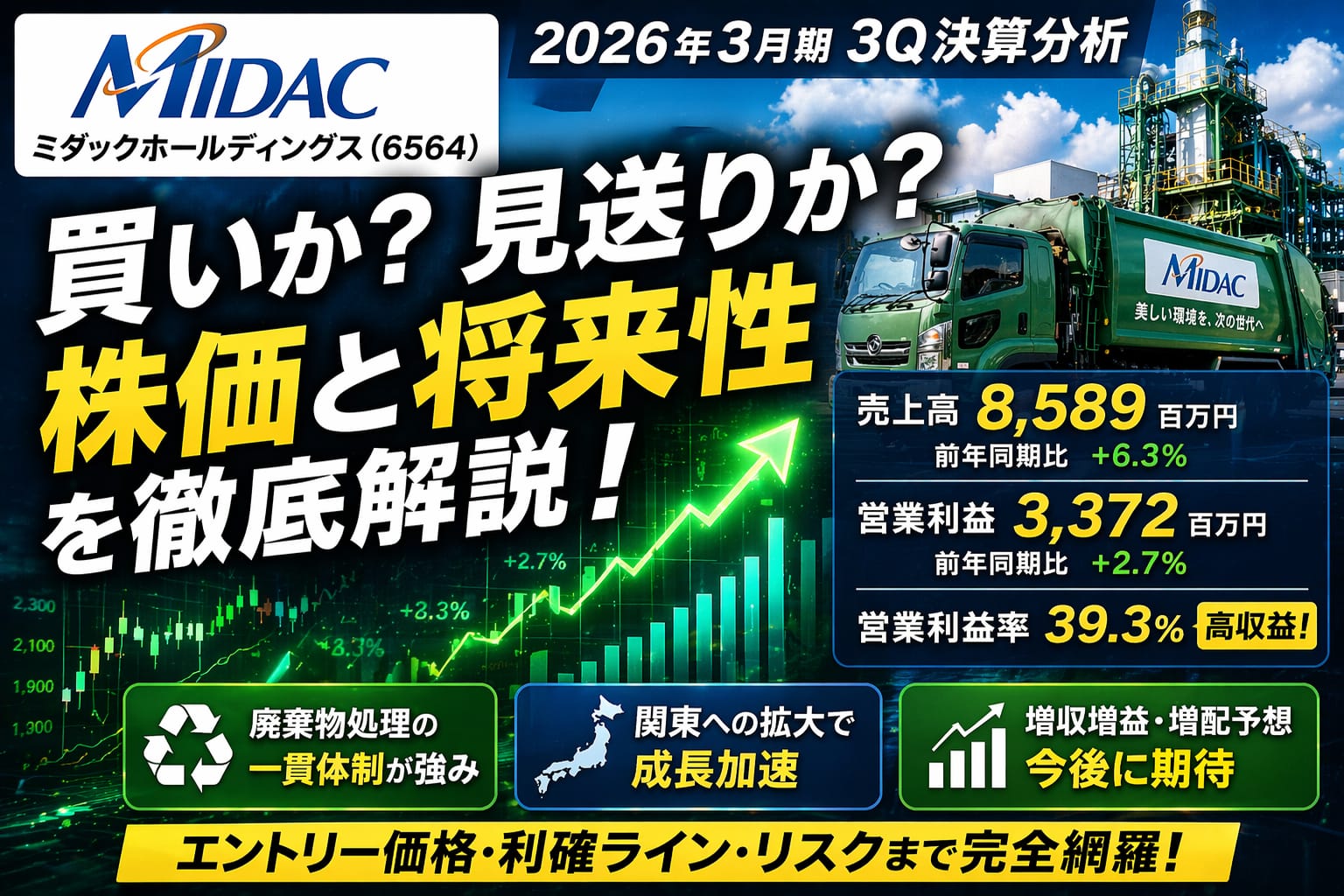 「ミダックHDは、規模より収益性で勝つ廃棄物処理株。買うなら高値追いではなく押し目。」