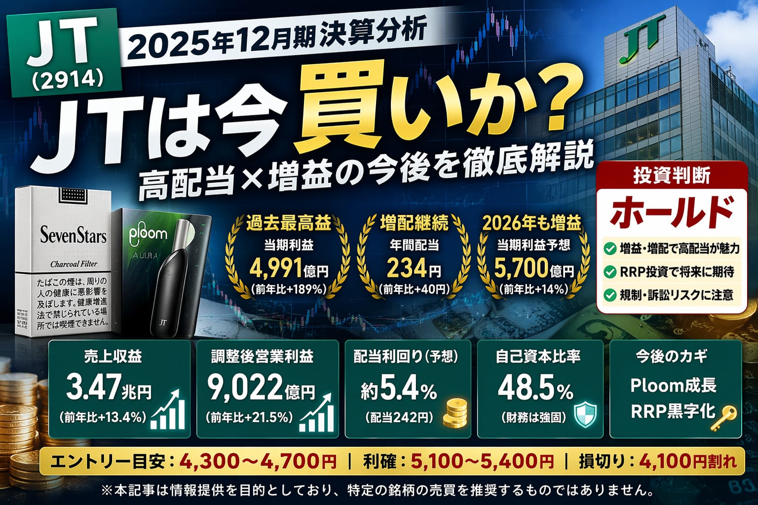 【JT(2914)決算分析】日本たばこ産業は今買いか?2025年12月期決算と2026年見通しから株価・将来性を判断